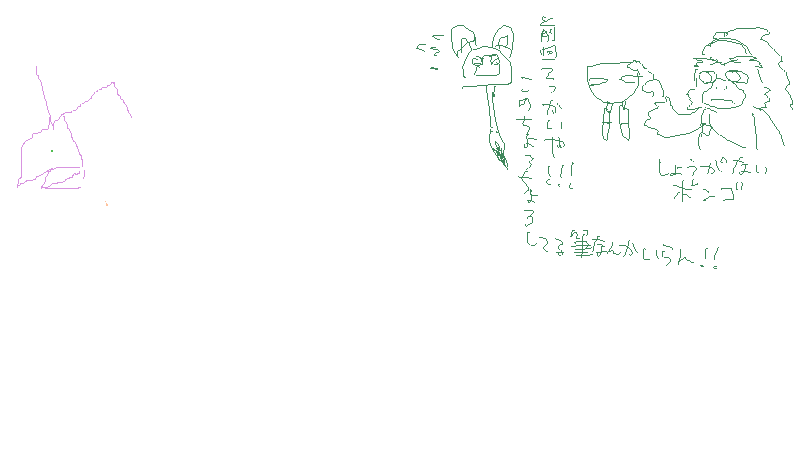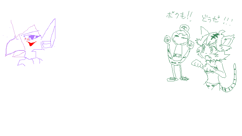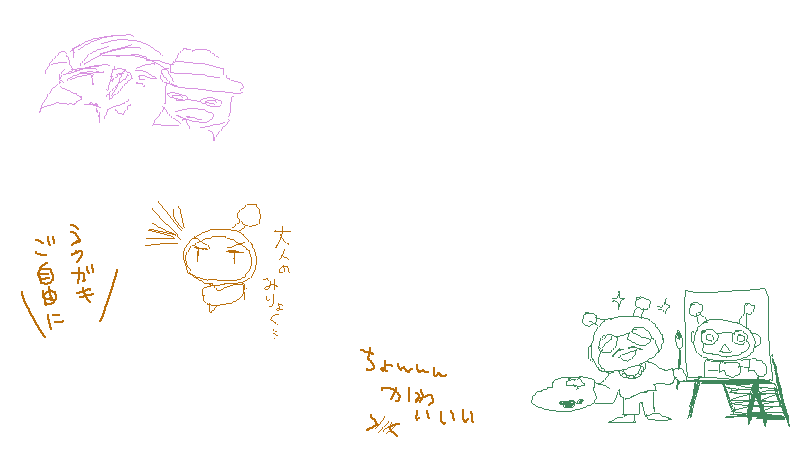 (左下はどっちがモモちゃん上手く描けるか勝負してるアイン・バグラー)