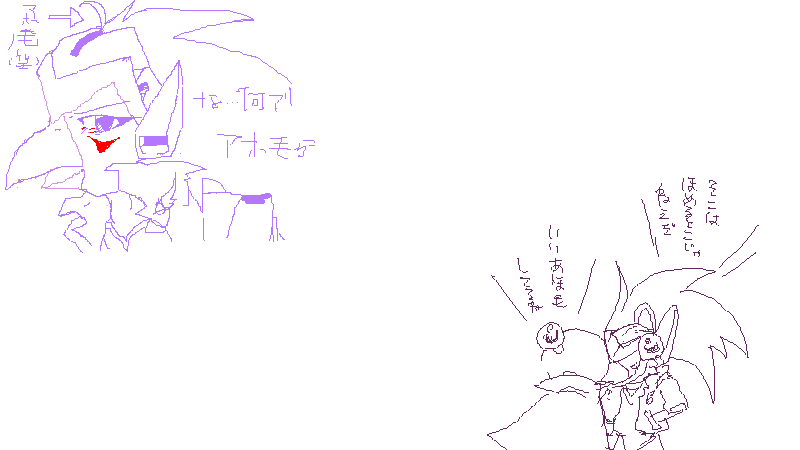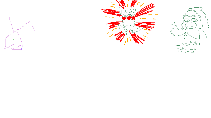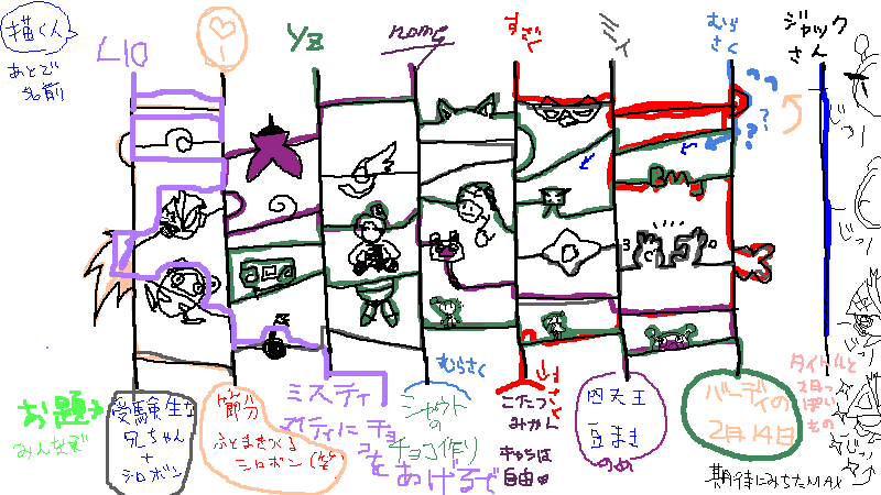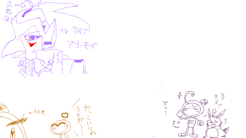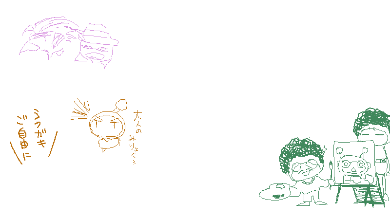 アミダで皆さんで描いていた一枚の絵ですが、途中1.3MB(?)あたりでシステムに全消しされるというトラブルが発生し、完成することが出来ませんでした。
