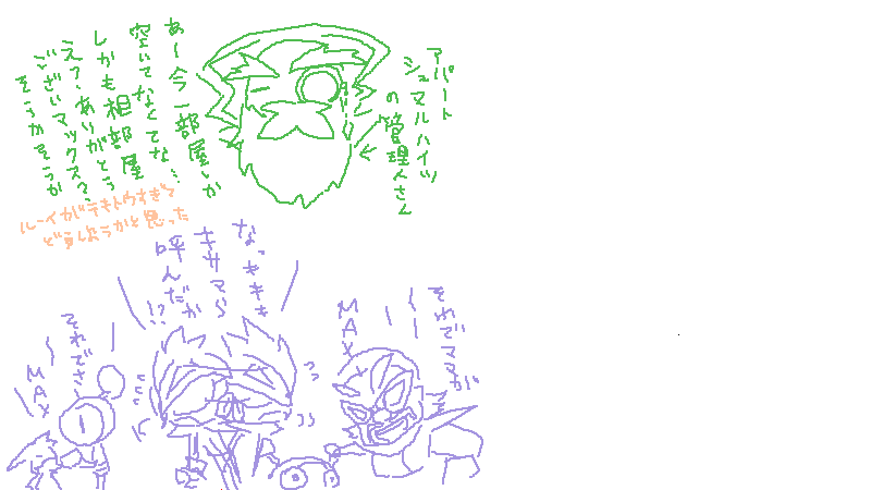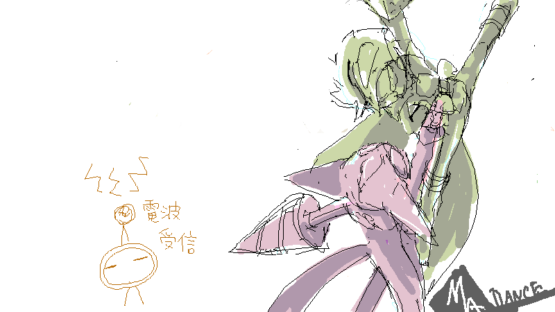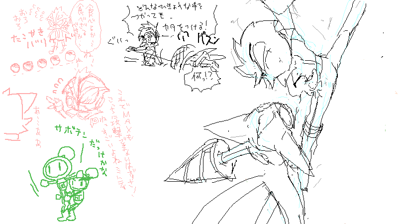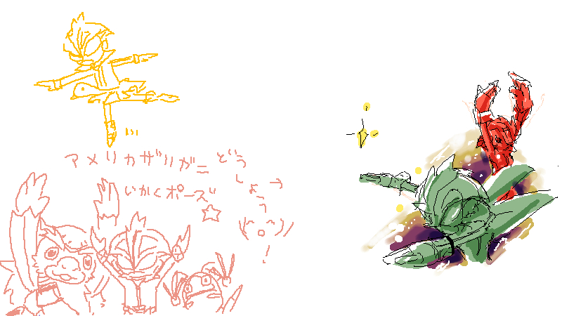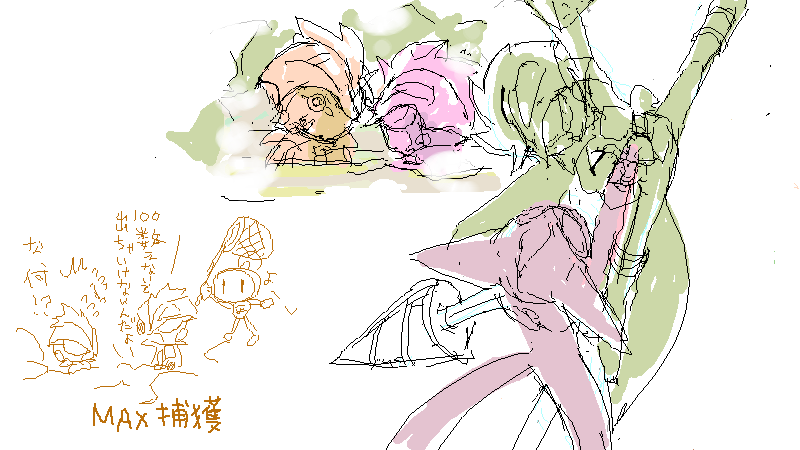 「MAXの頭ってカマキリに似てるね」って話題から、のめさんがカマキリポーズのMAXを描きだして本気でどうしようかと…爆笑しました!これでもキマっているから困る。